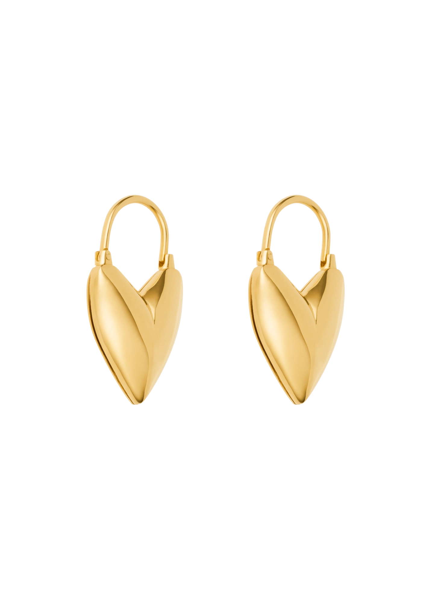 Miu Huggies — two sides of the same feeling. Crafted in Sterling Silver 925, finished with white rhodium or 24k yellow gold plating, these earrings reinterpret the classic huggie through a heart-shaped sculptural design that can be worn on both sides.